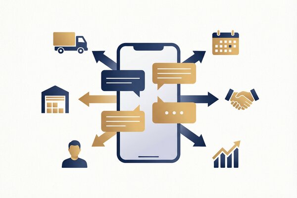 Your crew texts commands like “mark Johnson done” from the job site.